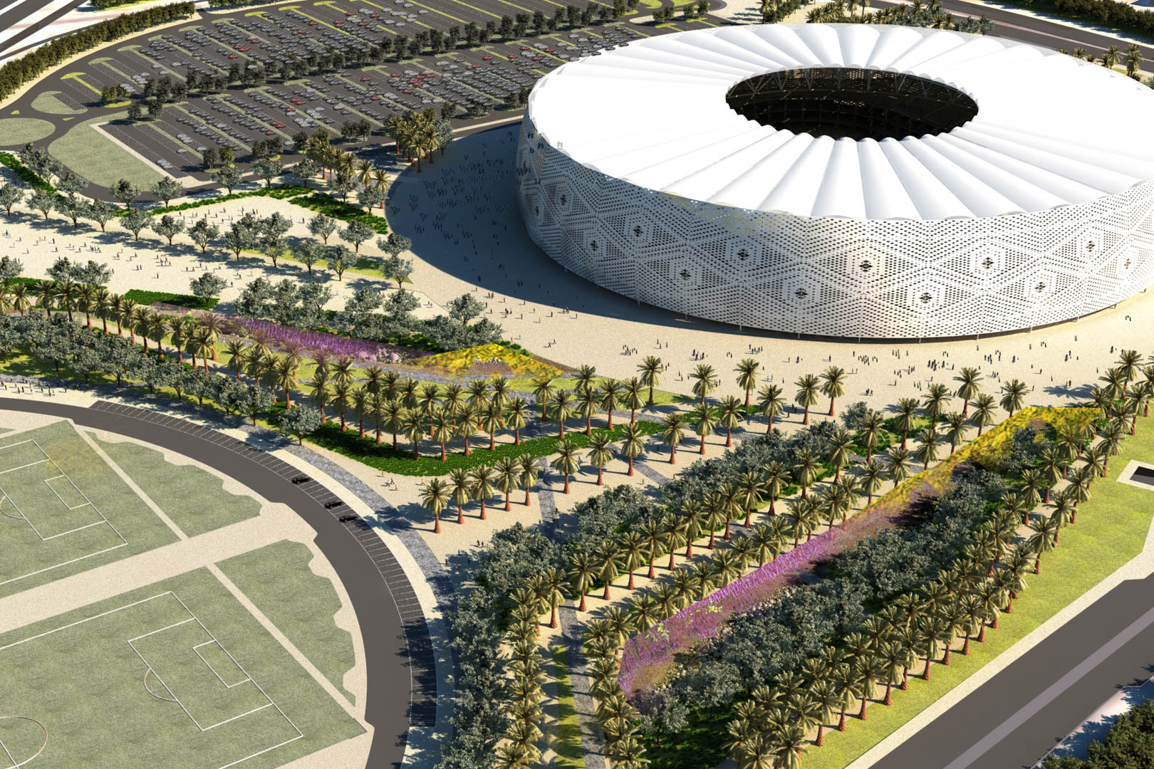 Vegetation places a big role in the project. All the main paths will fully shaded by trees, will protect the users from the heat, and the main paths will be identified by signature palms.
